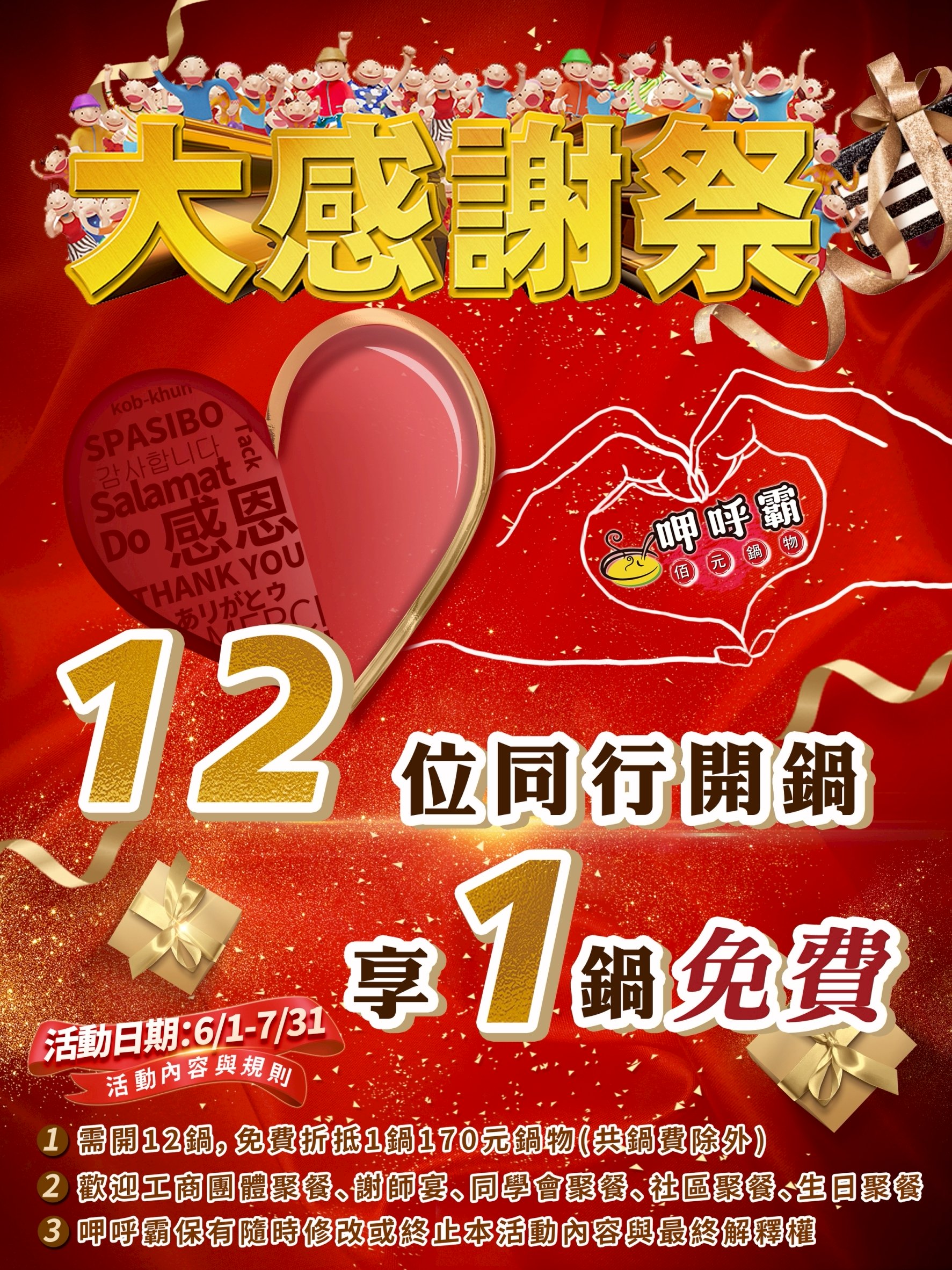 活動公告Activity 2025 3月活動 EAT 10元加購買豬肉 2026-01-05 2025 5月活動 母親節優惠 2026-01-05 2025 6月活動 感恩感謝祭 2026-01-05 2025 7月活動 新品上市蒙古麻辣鍋 2026-01-05 2025 8月 七夕限定 玫瑰魚捲 2026-01-05 2025 9月 元氣開學季 加購優惠 2026-01-05 10月 開鍋優惠野生小卷 2026-01-05 雙11大優惠 享白蝦8隻 2026-01-05 3月活動 開鍋+10元,豬肉增量3片 2024-04-17 « 上一頁 Page1 Page2 Page3 下一頁 »